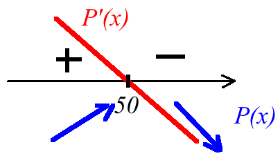 \(P'(x)=0\quad\leftrightarrow\quad x=50\)