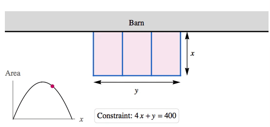 Zatem, wymiary zagrody, które zmaksymalizują wykorzystane miejsce to \(200m\times 50m\).