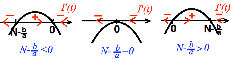 - \(N\) jest stałe i w zależności od tego czy \(N-\frac{b}{a}\) jest większe, mniejsze, czy równe zero, będziemy mieli różne zachowania
